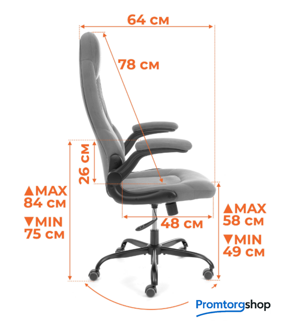 | Высота кресла (стула) | Высота по подлокотникам от 75 до 84 см. Высота подлокотника 26 см |