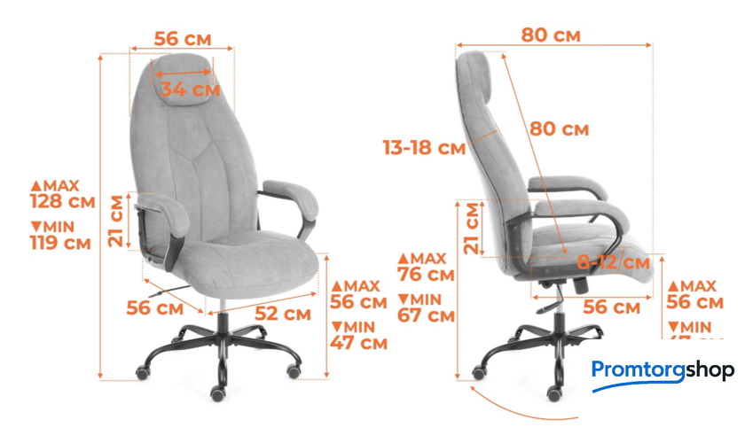 | Высота кресла (стула) | Высота по подлокотникам от 67 до 76 см |