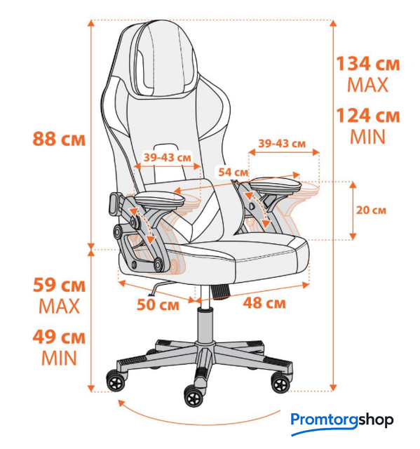 Высота кресла (стула) | Высота подлокотника 20 см |