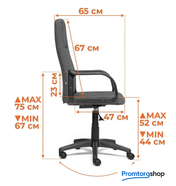 | Высота кресла (стула) | Высота по подлокотникам от 67 до 75 см. Высота подлокотника 23 см |