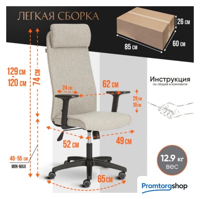 | Высота кресла (стула) | Высота подлокотника от 19 до 29 см |