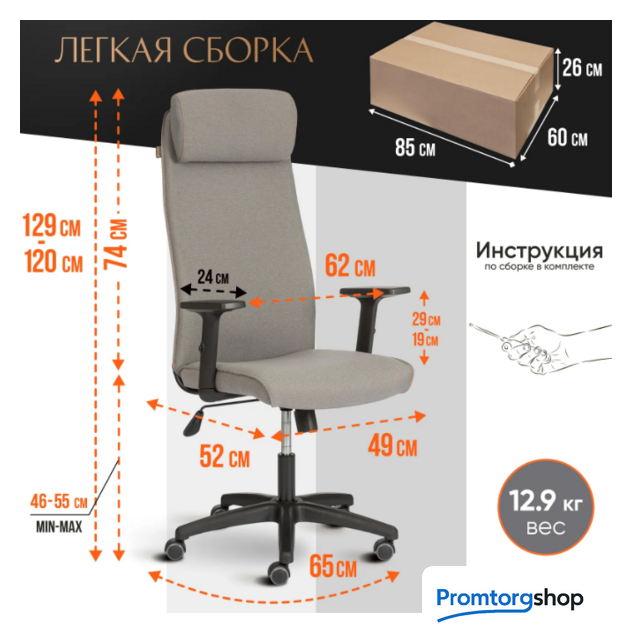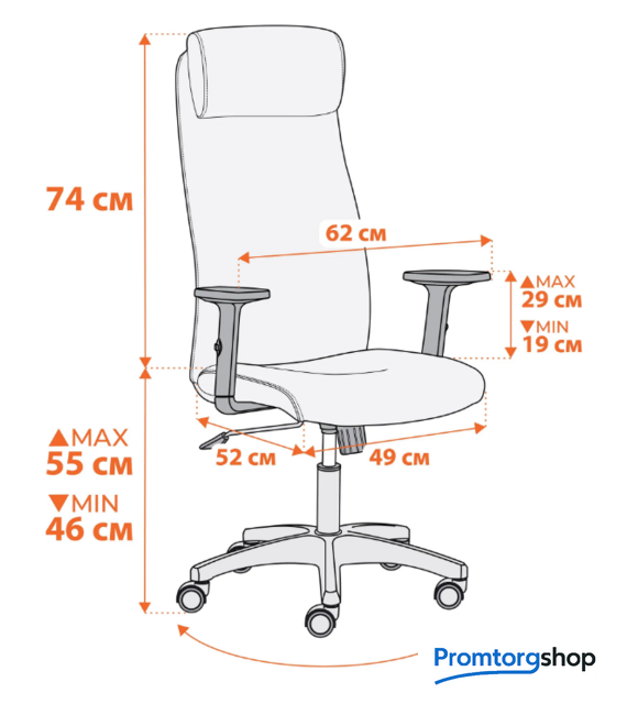 | Высота кресла (стула) | Высота подлокотника от 19 до 29 см |