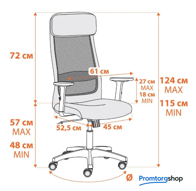 | Высота кресла (стула) | Высота подлокотника от 18 до 27 см |