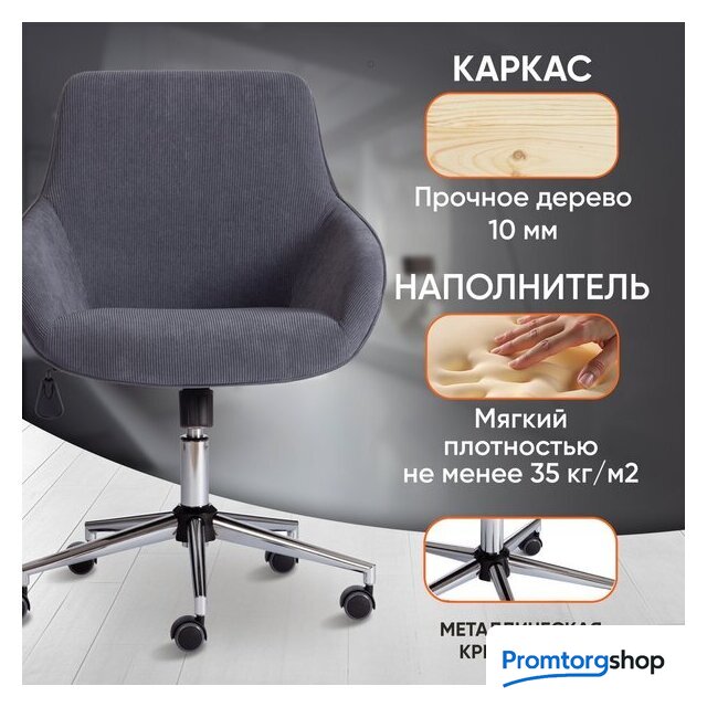| Описание | ✅Ключевые характеристикиОфисное кресло предназначено для персонала и выполнено в стильном графитовом цвете. Оснащено тканевой обивкой из вельвета, что обеспечивает комфорт и приятные тактильные ощущения. Высота сиденья регулируется в диапазоне от 48 до 57 см, ширина сиденья составляет 41 см, а глубина 38 см.✅Преимущества и отличияМодель оснащена механизмом качания DMS (топ-ган, TILT), который позволяет расслабиться во время работы, а резиновые ролики обеспечивают плавное и бесшумное перемещение по твердым покрытиям. Металлическая крестовина гарантирует надежность и долговечность конструкции.✅ПрактичностьКресло поставляется в разобранном виде, что облегчает транспортировку и сборку. Подлокотники обтянуты тем же вельветом, что и сиденье, что повышает комфорт при длительном использовании. Регулировка высоты сиденья позволяет адаптировать кресло под индивидуальные параметры пользователя.✅УникальностьИспользование ткани вельвет в сочетании с металлической крестовиной и резиновыми роликами выделяет эту модель среди офисных кресел, предлагая оптимальное сочетание стиля, комфорта и функциональности. |