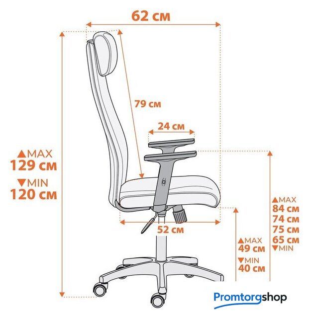| Высота кресла | 120 — 129 см |