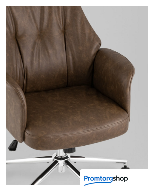 | Тип | кресло офисное. Элегантность и универсальность. Это кресло, которое сочетает в себе изысканный винтажный стиль с актуальной эргономикой. Обивка из качественной коричневой экокожи придает изделию солидный вид, а мягкие формы спинки и подлокотников обеспечивают комфорт на протяжении всего дня. Такой дизайн легко впишется как в классический кабинет, так и в современное офисное пространство или домашний рабочий уголок. Качество материалов. Экокожа приятна на ощупь, устойчива к износу и проста в уходе — достаточно протереть влажной салфеткой. Металлическая крестовина гарантирует прочность конструкции и уверенную устойчивость даже при интенсивной эксплуатации. Полиуретановые ролики обеспечивают плавное передвижение без царапин на полу. Функциональность в деталях. Благодаря механизму качания кресло адаптируется под ваши движения и поддерживает правильную посадку. Газлифт 3 класса обеспечивает надежную и долговечную работу механизма. Кресло выдерживает нагрузку до 120 кг, сохраняя при этом комфорт даже при длительном использовании. Neoma станет отличным выбором как для рабочего кабинета, так и для домашнего офиса, учебного места или переговорной зоны. Это удачное сочетание практичности, стиля и удобства. |