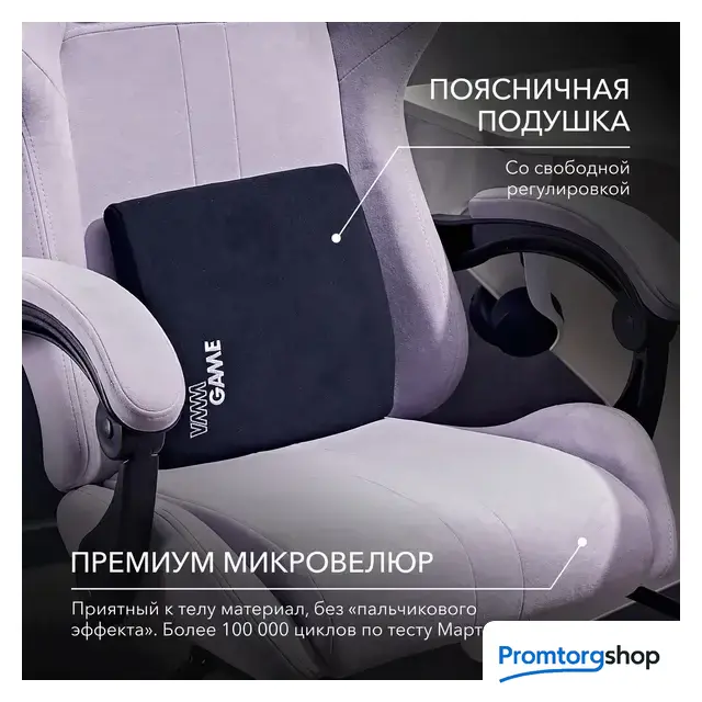 Материал обивки | Кресло обито качественным и прочным микровелюром – выдерживает более 100 000 циклов по тесту Мартиндейла. Велюр более устойчивый к когтям домашних животных, чем экокожа и дольше сохраняет свой первоначальный внешний вид. За счет своих влаговпитывающих свойств, велюровое кресло обеспечит комфорт во время длительного использования. Лаконичный логотип на подголовнике, выполненный методом тиснения, придает креслу премиальный вид. |