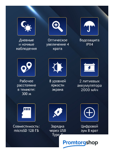 | Тип ПНВ | Длина волны ИК-осветителя 850 нм. |