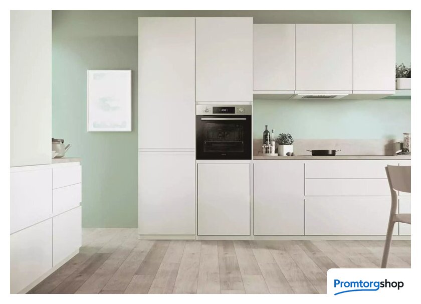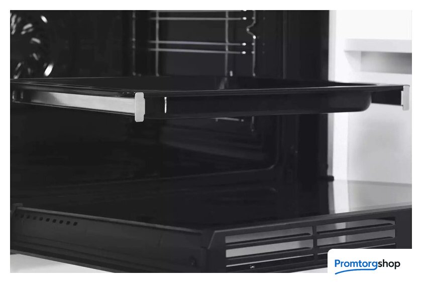 электрический с конвекцией, объем 70 л, утапливаемые переключатели, 7 режимов, очистка паровая, 2 стекла в дверце, направляющие проволочные + телескопические (1 уровень)