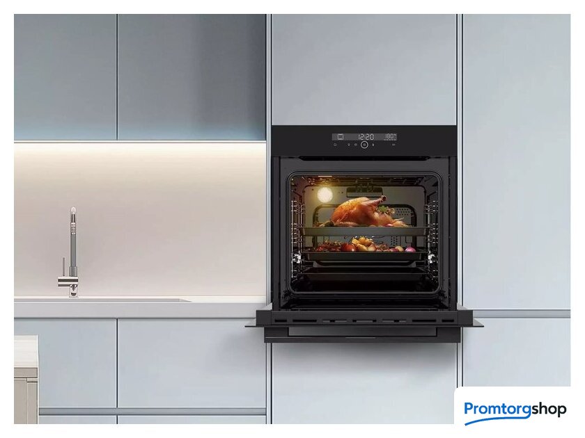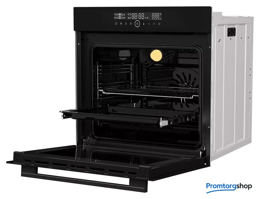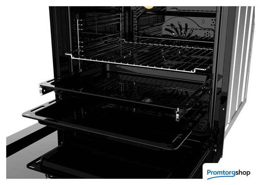 электрический с конвекцией, объем 78 л, 14 режимов, очистка паровая, 3 стекла в дверце, направляющие проволочные + телескопические (1 уровень)