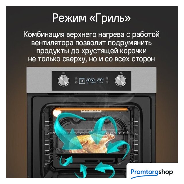 | Режимы работы | двухсторонний нагрев, гриль + конвекция, нижний нагрев + конвекция, двухсторонний нагрев + конвекция, размораживание |