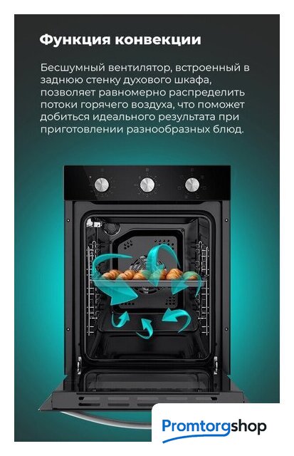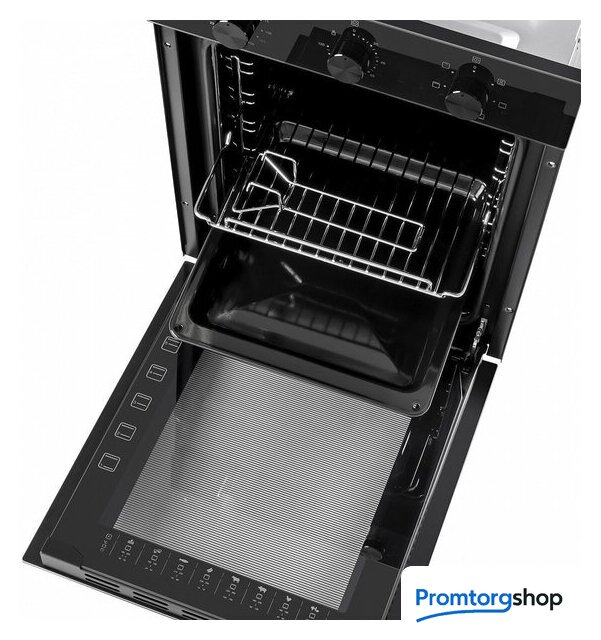 электрический с конвекцией, объем 51 л, 6 режимов, очистка ручная, 2 стекла в дверце, направляющие проволочные