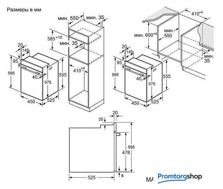 | Размеры ниши для встраивания | |
