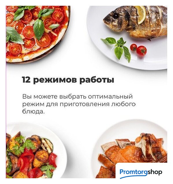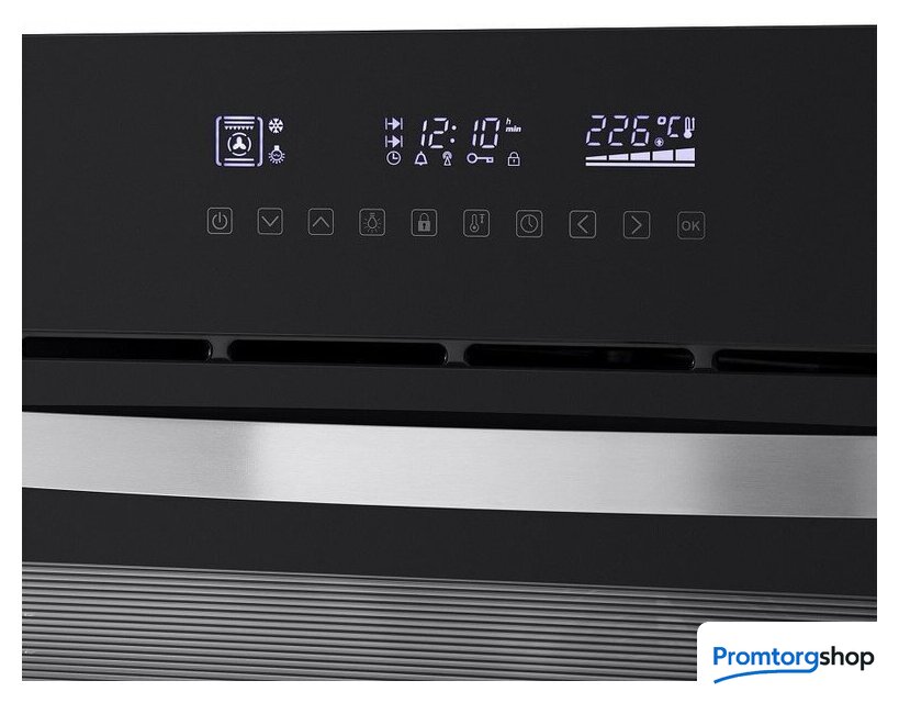 | Режимы работы | нижний нагрев, двухсторонний нагрев, большой гриль, вентиляционный нагрев, гриль + конвекция, нижний нагрев + конвекция, нижний + вентиляционный нагрев, двухсторонний нагрев + конвекция, размораживание |