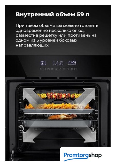 | Комплектация | стандартный противень, глубокий противень, решетка, приспособление для извлечения противней |