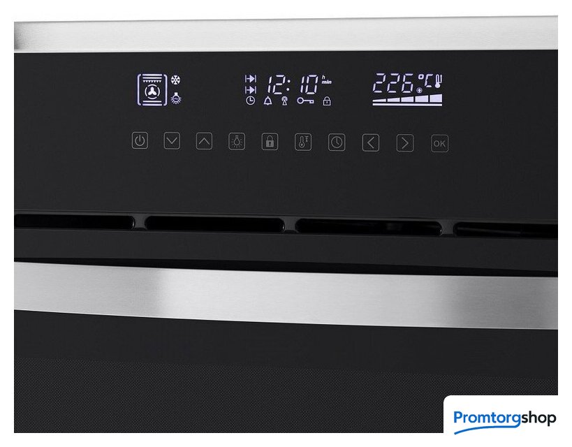 | Режимы работы | нижний нагрев, двухсторонний нагрев, большой гриль, вентиляционный нагрев, гриль + конвекция, нижний нагрев + конвекция, нижний + вентиляционный нагрев, двухсторонний нагрев + конвекция, размораживание |