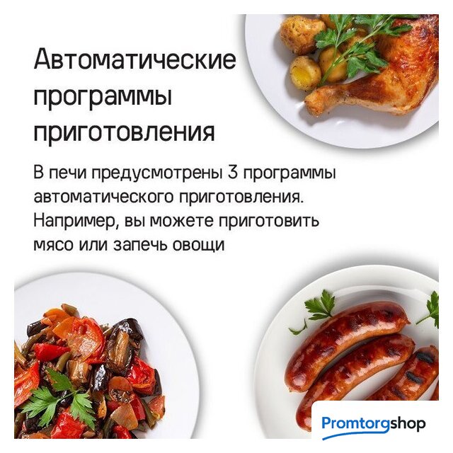| Режимы работы | гриль + конвекция, размораживание, предварительный разогрев духовки |
