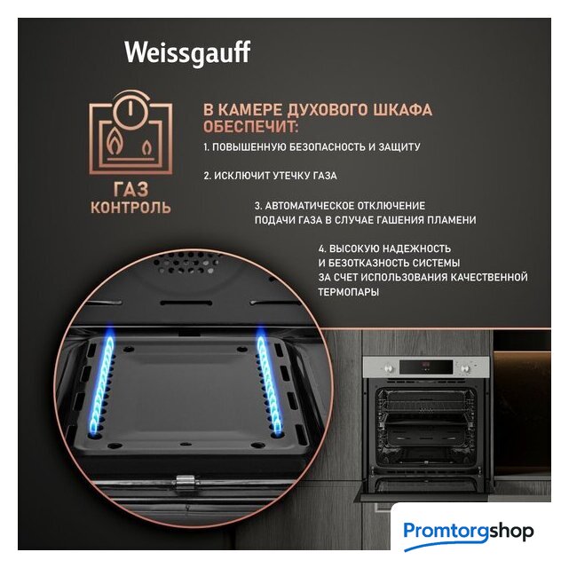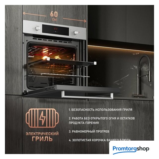 | Функциональные особенности | таймер, отложенный старт, звуковой сигнал, термостат, освещение, электроподжиг, газ-контроль |