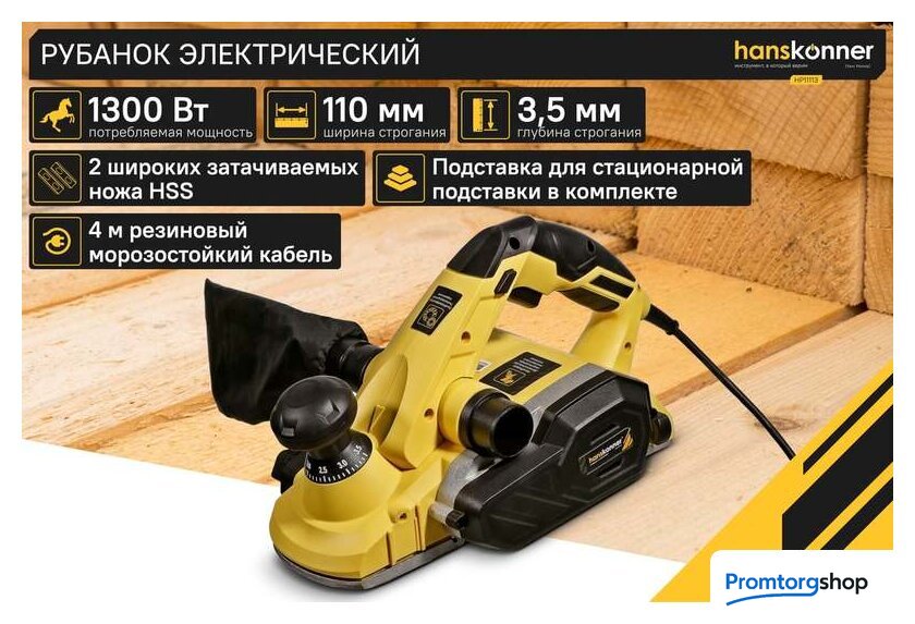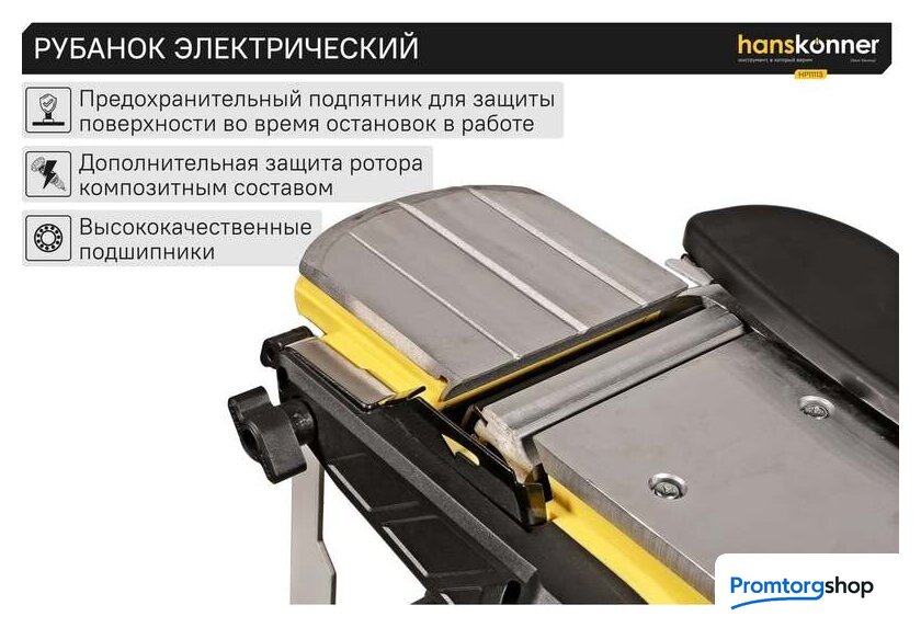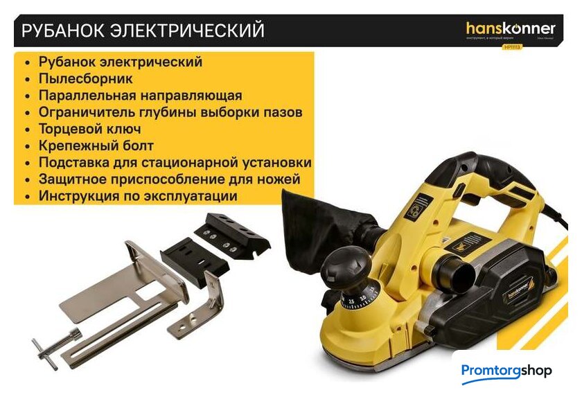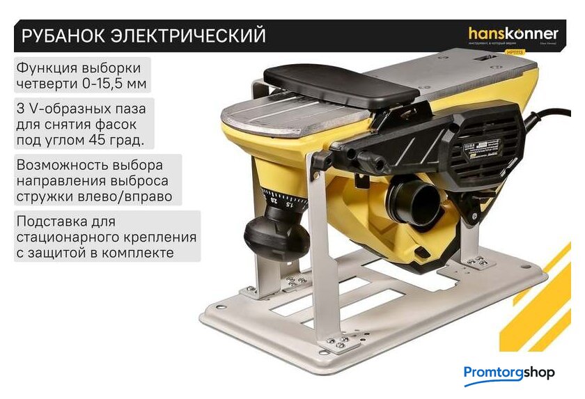 | Питание | сеть, Длина кабеля 4 м. Рубанок H11113 служит для обработки древесины любых пород. Подходит для строгания заготовок шириной до 110 мм. Функционал рубанка предусматривает возможность выборки четверти в диапазоне до 15,5мм, а направляющие пазы на подошве позволяют снимать фаску. Комплект поставки включает подставку для стационарного крепления при этом значительно расширяя возможности инструмента. Рубанок укомплектован 4м кабелем питания PVC с липучкой-фиксатором, гарантируя пользователю мобильность при работе. Данная модель имеет дополнительную защиту ротора композитным составом по технологии HansProtect.,что позволяет увеличить срок службы инструмента. |
