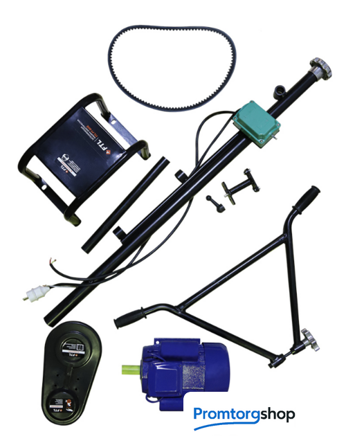 | Комплектация | Коробка 1-ая: Изделие с комплектом для сборки - 1 шт. Редуктор в сборе с защитным кожухом и ножами (4 шт.) - 1 комплект Верхняя часть ручки управления с выключателем - 1 шт. Нижняя часть ручки управления - 1 шт. Защитный чехол ремня с крепежом крепления - 1 шт. Защитная рама электродвигателя - 1 шт. Шкив приводной на электродвигатель с крепежем крепления - 1 шт. Приводной ремень 13 х 650li - 1 шт. Втулка (ось) тяги регулировки наклона ножей - 1 шт. Трубка переноска - 1 шт. Болты крепления руля - 2 шт. Инструкция по эксплуатации + гарантийный талон - 1 шт. Коробка 2-ая: Электродвигатель - 1шт. Шпонка -1шт. |