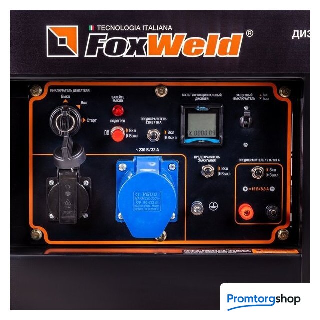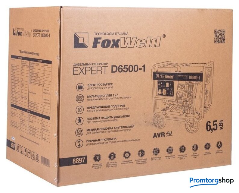 | Комплектация | - Дизельный генератор FoxWeld Expert D6500-1 – 1шт.;- ЕВРО вилка 230В / 16А – 1 шт.;- ЕВРО вилка для силовой розетки 230В / 32А – 1 шт.- Стартерная АКБ – 12 В / 36 Ач - Набор инструментов (шлицевая отвёртка + два рожковых ключа) – 1 шт.- Транспортировочный комплект с колесами и крепежными элементами – 1 шт.- Воронка пластиковая со шлангом – 1 шт.- Ключи зажигания – 2 шт.- Транспортировочная проушина – 1 шт.- Инструкция + гарантийный талон – 1 комплект.- Индивидуальная упаковка – трехуровневый короб "матрёшка" из 5-слойного коричневого гофрокартона |