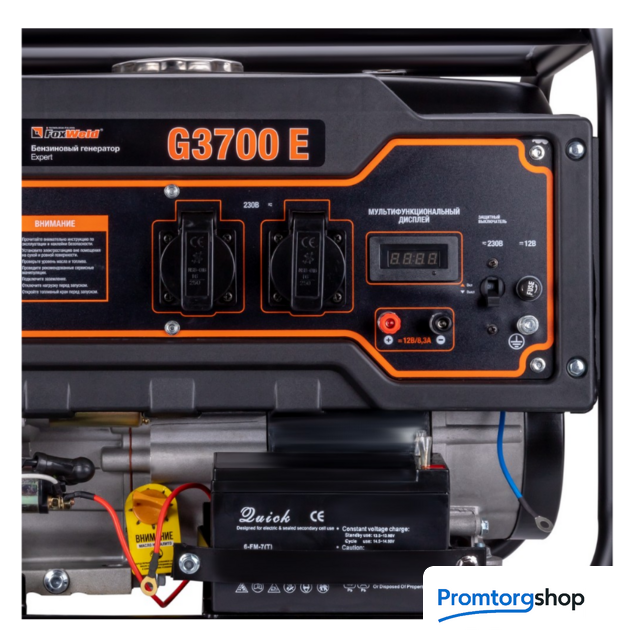 | Тип | FoxWeld Expert G3700 E - простой, мощный и надёжный в применении резервный источник электричества на силовой раме классической компоновки для стационарного использования. Предназначен для обеспечения резервным электричеством бытовых приборов. Может обеспечить светом и электричеством небольшой загородный дом во время его отключения от основной электросети. Медные обмотки альтернатора обеспечивают стабильно высокую электрическую мощность в течение продолжительных рабочих интервалов и гарантируют высокий срок службы изделия. В качестве дополнительного комфорта модель оснащена электростартером для запуска с ключа, что существенно снижает усилия при вводе в эксплуатацию. ВНИМАНИЕ! Стоит учесть, что многие электропотребители оснащенные электродвигателем имеют высокие пусковые токи в момент запуска и требуют от автономного источника питания более высокую мощность генерируемого тока для их последующей работы (холодильники, насосы и т.п.). Рекомендуем проверять значения пусковой мощности в инструкции по эксплуатации приборов, которые планируется подключать к генератору. ВНИМАНИЕ! Перед первым использованием необходимо залить масло для 4Т двигателей в картер в нужном объёме, в соответствии с инструкцией по эксплуатации. ОСОБЕННОСТИ: Флагманская серия – Expert Расширенная гарантия – 3 года Медные обмотки альтернатора Двигатель – одноцилиндровый, четырёхтактный (4T), рабочий объём 212 куб. см, Мощность 7 л.с. Объём масла в картере двигателя: 0,6 л Объём топливного бака: 15 л Тип запуска: ручной/электростартер (с ключа) Розетки: 2 x 230В / 16А ; Дополнительный выход – 12В / 8,3 Автомат защиты: 1 шт. на 2 линии 230В / 16А; Номинальная / Максимальная электрическая мощность: 2,8 кВт / 3,3 кВт Мультидисплей “4в1” Материал обмоток альтернатора – медь Тип стабилизации напряжения – AVR Уровень шума: 95 дБ(А) Вес: 45,65 кг |