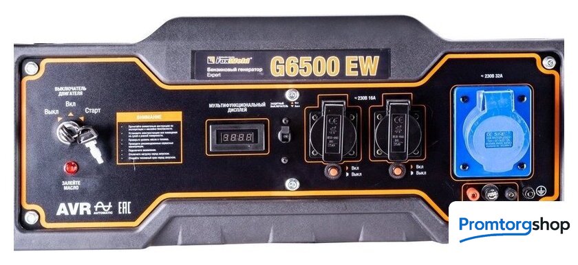 | Комплектация | - Бензиновый генератор FoxWeld Expert G6500EW – 1 шт.- ЕВРО вилка 230В / 16А – 2 шт.- Вилка для силовой розетки 230В / 32A – 1 шт.- Отвёртки (+ / -) комплект – 1 шт.- Провода с клеммами для зарядки 12В АКБ комплект – 1 шт.- Нижняя опора из резины ("ножка") – 4 шт.- Свечной ключ – 1 шт.- Ключ зажигания – 2 шт.- Комплект для крепления АКБ (2 болта + 2 гайки) – 1 шт.- Транспортировочный комплект (рукоятки, колеса, опоры) – 1 шт.- Инструкция + гарантийный талон – 1 комплект |