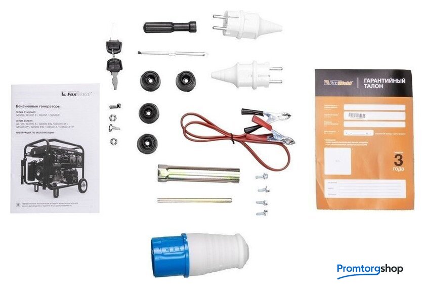 | Комплектация | - Бензиновый генератор FoxWeld Expert G8500 EW – 1 шт.- Блок автоматического ввода резерва ATS-1-230 – 1 шт.- ЕВРО вилка 230В / 16А – 2 шт.- Вилка для силовой розетки 230В / 32A – 1 шт.- Отвёртки (+ / -) комплект – 1 шт.- Провода с клеммами для зарядки 12В АКБ комплект – 1 шт.- Нижняя опора из резины ("ножка") – 4 шт.- Свечной ключ – 1 шт.- Ключ зажигания – 2 шт.- Комплект для крепления АКБ (2 болта + 2 гайки) – 1 шт.- Транспортировочный комплект (рукоятки, колеса, опоры) – 1 шт.- Инструкция + гарантийный талон – 1 комплект |