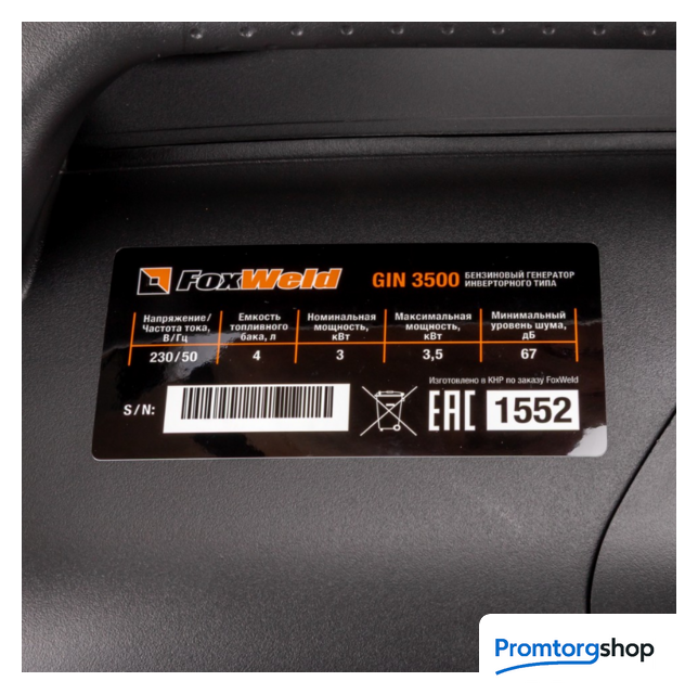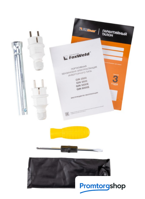 | Комплектация | Бензиновый генератор инверторного типа GIN 3500 – 1 шт.; • Евророзетка 16 А – 2 шт.; • Отвёртка – 1 шт.; • Свечной ключ – 1 шт.; • Инструкция + Гарантийный талон – 1 компл. |