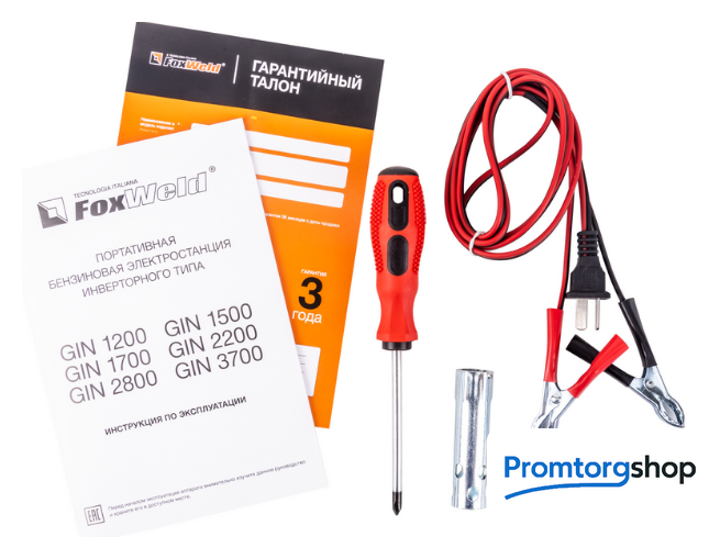 | Комплектация | Бензиновый инверторный генератор FoxWeld GIN 3700 – 1 шт. Свечной ключ – 1 шт. Отвёртка - 1 шт. Провод с вилкой 12В для зарядки АКБ - 1 шт. Инструкция + гарантийный талон – 1 комплект |