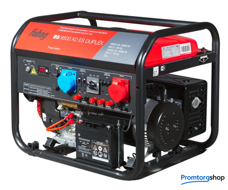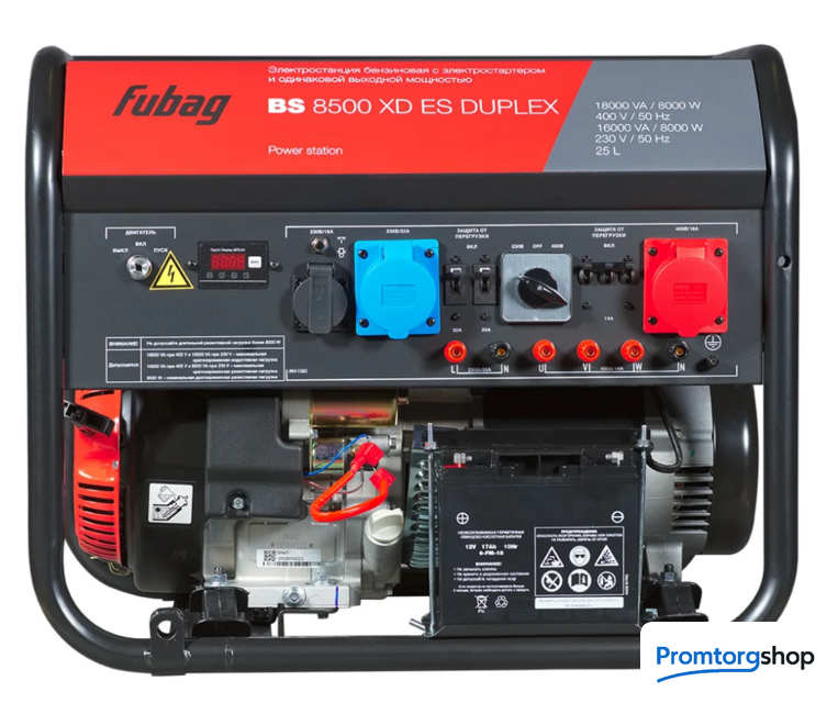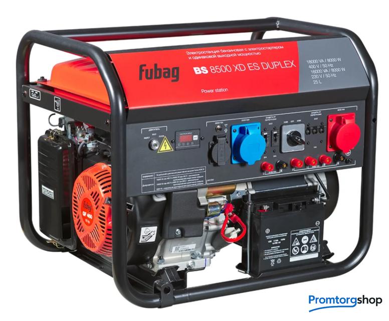 | Тип | Бензиновый генератор с мощностью 8,5 кВт для однофазного и трехфазного режима работы. Но теперь еще и с функцией DUPLEX! Новая функция выдает высокую пусковую мощность, как в однофазном, так и в трехфазном режимах для быстрого запуска высоконагруженных индуктивных потребителей. Электрогенератор BS 8500 XD ES DUPLEX — это лучшее решение для работы с высоконагруженным оборудованием. Строительные площадки, автомастерские, подсобная хозяйственная деятельность, любая профессиональная деятельность — всё это требует качественного электроснабжения для разнообразных видов работ. Большой моторесурс работы генератора обеспечивает качественный OHV-двигатель FUBAG. На раму через демпферы помещены альтернатор и двигатель. Эта конструкция позволяет погашать вибрации на протяжении работы, либо в момент перевозки BS 8500 XD ES DUPLEX, что способствует долговечности всего устройства. В баке помещается 25 литров бензина, за уровнем которого можно следить благодаря индикатору. Вариант режима работы, однофазный или трехфазный, выбирается переключателем на лицевой панели. Стартером без проблем осуществляется запуск электростанции. Аккумуляторная батарея входит в комплект поставки. Заслонка карбюратора и топливного крана регулируется автоматически. Ручной режим управления также может быть включен. Генератор имеет три влагозащищенные и пылезащищенные розетки: 1х230В/16 А, 1х230В/32 А, 1х400В/16 A, а так же силовые клеммы на 220 В и 380 В для подключения мощных однофазных и трехфазных потребителей энергии. Защита от короткого замыкания находится на розетках и на клеммах. Благодаря многофункциональному цифровому дисплею можно контролировать напряжение и частоту. Установленный счетчик моточасов последовательно отсчитывает межсервисные промежутки, что позволяет помнить о следующем техническом обслуживании. Индикатор низкого уровня масла оповестит вас о необходимости долить масло. В крайнем случае датчик уровня масла способен выключить генератор. Усиленная толстостенная сварная рама, диаметром 32 мм. Подобная конструкция выдержит нагрузки во время сверхтяжелой эксплуатации. А наиболее важные части генератора надежно защищены от попадания грязи. Рама генератора имеет подготовку под установку набора для транспортировки. Если потребуется, то можно установить колеса и ручки за пару минут. Комплект с колесами и ручками докупается опционально. Основные преимущества бензинового генератора BS 8500 XD ES DUPLEX профессиональный одноцилиндровый OHV двигатель FUBAG; усиленные медные обмотки альтернатора; система AVR, адаптированная под высокие токи в режиме DUPLEX при индуктивной нагрузке; электростартер с бортовым аккумулятором; cистемы защиты от перепадов нагрузки, отключение при пониженном уровне масла; многофункциональный цифровой дисплей; 1 розетка 230В/16А, 1 силовая розетка 230В/32 А, 1 розетка 400В/16А + клеммы для подключения мощных однофазных и трехфазных потребителей. Страна производства: Китай |