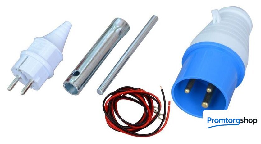 Комплектация | - Электрическая вилка - 3 шт., - разъем для АВР, - комплект проводов, - свечной ключ, - колёса. |