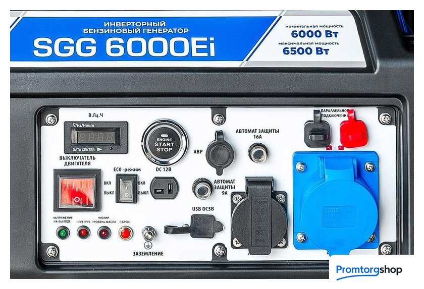 | Тип | Бензогенератор инверторный SGG 6000Ei с электростартом, коннектором для подключения блока АВР(блок автоматического запуска генератора), укомплектован колесным комплектом для удобства перемещения. Бензиновый генератор предназначен для подключения к нему потребителей тока общей максимальной мощностью до 6,5 кВт. Позволяет напрямую подключать к генератору как обычных потребителей, так и точное электронное оборудование, например, ноутбуки, LCD-телевизоры или смартфон. |