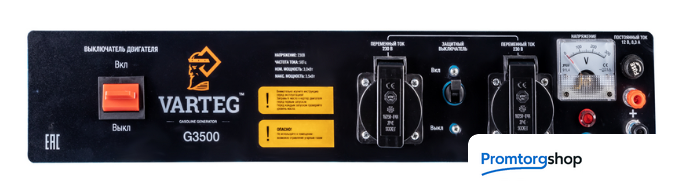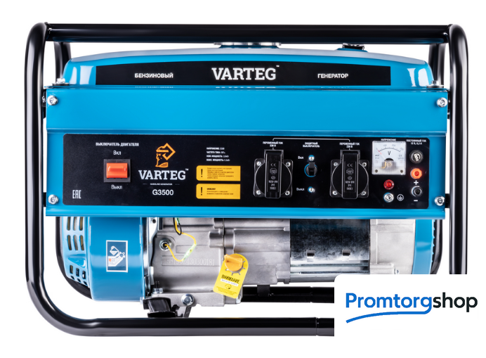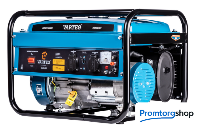 | Тип | Бензиновый генератор Varteg G3500 – простой в применении резервный источник электричества на силовой раме классической компоновки для стационарного использования. Предназначен для обеспечения резервным электричеством не требовательных к пусковым токам приборов. Может обеспечить светом и электричеством небольшой загородный дом во время его отключения от основной электросети. ВНИМАНИЕ! Стоит учесть, что многие электропотребители оснащенные электродвигателем имеют высокие пусковые токи в момент запуска и требуют от автономного источника питания более высокую мощность генерируемого тока для их последующей работы (холодильники, насосы и т.п.). Рекомендуем проверять значения пусковой мощности в инструкции по эксплуатации приборов, которые планируется подключать к генератору. ВНИМАНИЕ! Перед первым использованием необходимо залить масло для 4Т двигателей в картер в нужном объёме, в соответствии с инструкцией по эксплуатации. ОСОБЕННОСТИ: Двигатель: одноцилиндровый, четырёхтактный (4T), рабочий объём 212 куб. см, Мощность 7,0 л.с., Тип запуска: ручной Объём масла в картере двигателя: 0,6 л Объём топливного бака: 15 л Розетки: 2 x 230В / 16А ; Дополнительный выход – 12В / 8,3 Автомат защиты: 1 шт. на 2 линии 230В / 16А Номинальная / Максимальная электрическая мощность: 3,0 кВт / 3,5 кВт Cтрелочный вольтметр – да Материал обмоток альтернатора – алюминий Тип стабилизации напряжения – AVR |