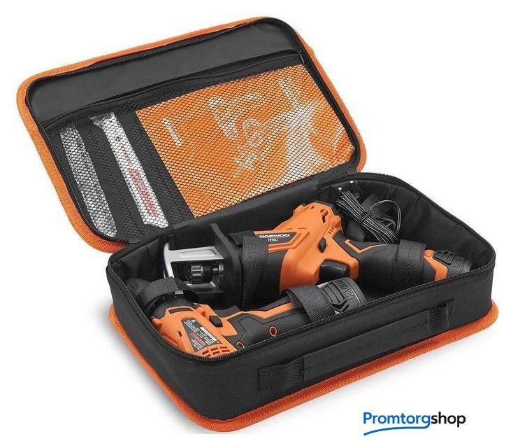 | Комплектация | - Дрель-шуруповерт аккумуляторная Daewoo DAA 1210Li;- Сабельная пила аккумуляторная Daewoo DGS 1210Li;- Аккумулятор 1,5 А/ч - 2 шт;- Зарядное устройство;- Инструкция;- Сумка;- Коробка; |