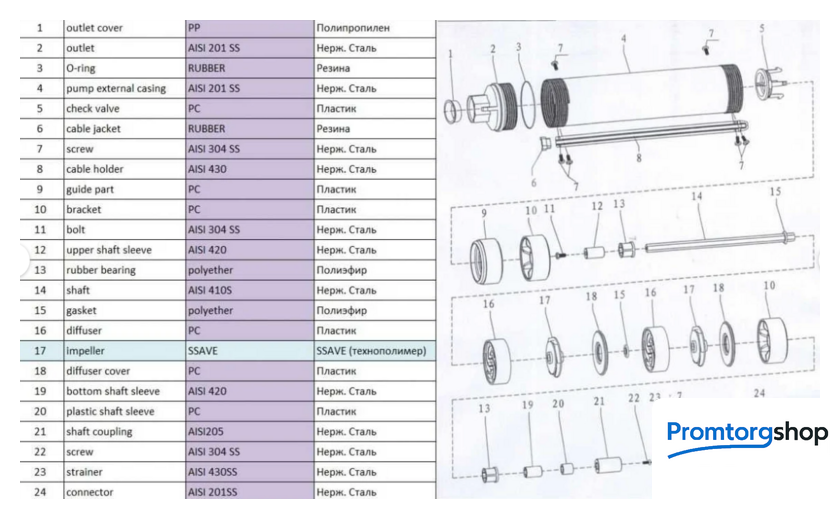 | Тип | скважинный насос, нормально всасывающий, центробежный, многоступенчатый |