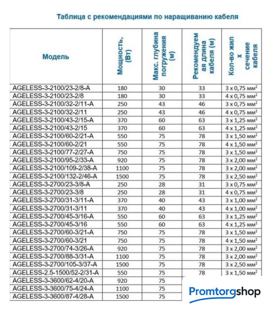 | Метод установки | погружной. Дополнительная комплектация кабель (2 метра 0.5 мм², (4 жилы), блок управления, комплект для удлинения кабеля, руководство по эксплуатации |