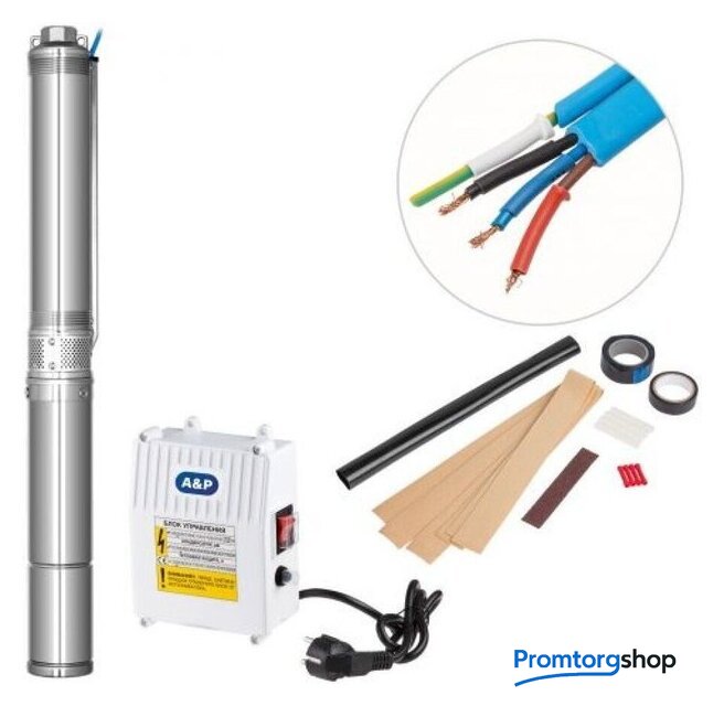 | Комплектация | - Кабель 2 метра 0,5мм2, (4 жилы);- Комплект для удлинения кабеля;- Коробка управления;- Насос;- Инструкция; |