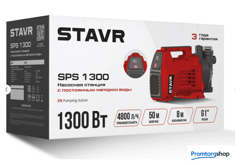 | Назначение | водоснабжение. Особенности: МОЩНЫЙ ДВИГАТЕЛЬ 1300 ВТ: обеспечивает надёжную и стабильную работу при высоких нагрузках — подходит для интенсивной эксплуатации. УНИВЕРСАЛЬНОСТЬ: забор воды с глубины до 8 м и напор до 50 м позволяют эффективно использовать насосную станцию для полива, орошения и подачи воды на значительное расстояние из источников, расположенных ниже уровня установки. ВЫСОКАЯ ПРОИЗВОДИТЕЛЬНОСТЬ — ДО 4800 Л/Ч: позволяет быстро перекачивать большие объёмы воды, что ускоряет наполнение резервуаров и выполнение поливочных работ. НАДЕЖНОСТЬ И БЕЗОПАСНОСТЬ: защита от сухого хода и протечек автоматически останавливает работу станции при отсутствии давления или потока и отключает, если вода не поступает. ВСТРОЕННЫЙ ФИЛЬТР: задерживает частицы и загрязнения, предотвращая засоры и обеспечивая долгий срок службы изделия. НИЗКИЙ УРОВЕНЬ ШУМА: комфортная эксплуатация рядом с жилыми помещениями или во дворе - не мешает отдыху. ПАНЕЛЬ УПРАВЛЕНИЯ С ИНДИКАЦИЕЙ: дисплей с кнопкой включения и светодиодами упрощает контроль за работой станции — видно, когда оборудование включено, работает под давлением или находится в режиме защиты. УНИВЕРСАЛЬНЫЕ ДИАМЕТРЫ ПАТРУБКОВ (1"): подходят для подключения распространённых шлангов и труб без дополнительных адаптеров. ВЛАГОЗАЩИТА (IPX4): герметичный корпус предотвращает попадание воды внутрь устройства, позволяя использовать его в различных условиях. КОМПЛЕКТАЦИЯ: насос, ключ крышки фильтра, ключ сливной горловины, руководство по эксплуатации. |