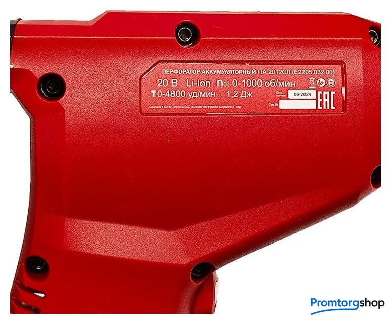 | Комплект поставки | - Перфоратор;- 2 аккумулятора 20В 2,0 Ач;- Зарядное устройство ЗУ 1220;- Скоба крепления на пояс;- Инструкция;- Кейс. |