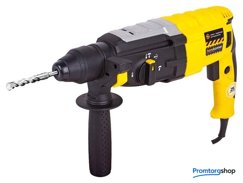 Комплект поставки | 3 бура по бетону: 6*150, 8*150, 10*150, 1 плоское зубило 14*250смазка для хвостовиков буров ограничитель глубины сверления дополнительная рукояткакейс |