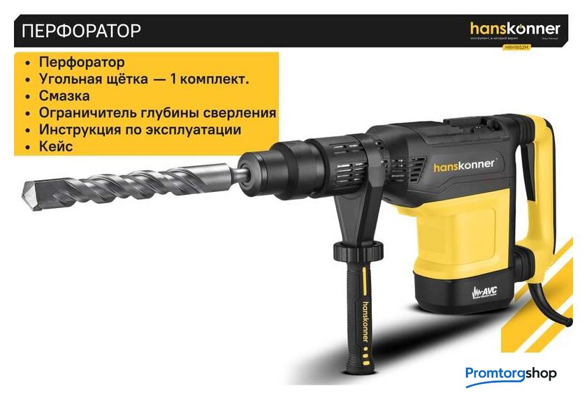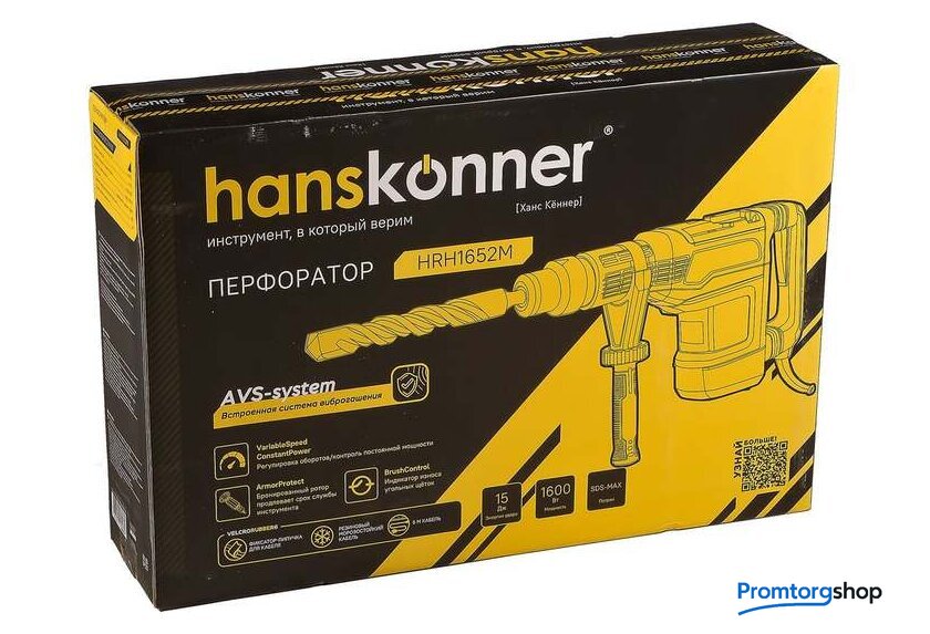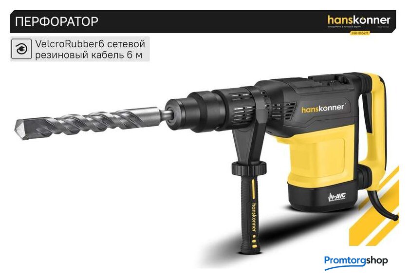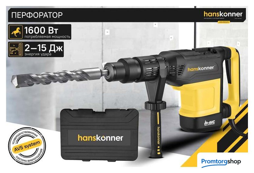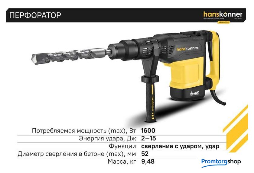| Режимы работы | долбление, сверление с ударом. Перфоратор HRH1652M — мощный, маневренный электроинструмент для сверления отверстий в таких материалах как кирпич, бетон или снятия старой керамики, штукатурки. В целях выполнения конкретной задачи следует выбрать один из режимов: «удар» или «сверление с ударом». Оптимальной настройке к проведению определенной задачи содействует электронная регулировка оборотов, а контроль постоянства мощности способствует продуктивному выполнению работ. Модель отличается встроенной системой виброгашения «AVS-system», которая поддерживает удобство и безопасность при использовании перфоратора. Бронированный ротор благоприятствует надежности при выполнения протяжных работ в условиях повышенной запыленности. Патрон SDS-МАХ предоставляет возможность быстрого и верного крепления необходимой оснастки. Регулируемость дополнительной рукояти вмести с индикатором износа угольных щеток придают удобства в обращении с перфоратором. Морозостойкий резиновый сетевой кабель длинной 6 м стимулирует комфорт при длительном применении. |