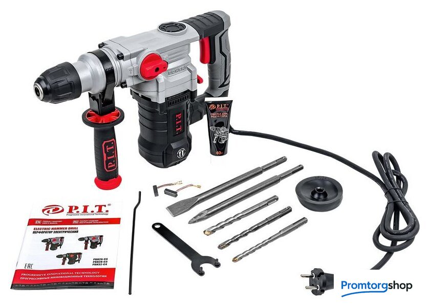 Комплект поставки | - перфоратор- пластиковый кейс- дополнительная рукоятка- ключ- щетки угольные- буры (3 шт)- зубило плоское- зубило пикообразное- смазка для редуктора- пыльник- ограничитель глубины сверления- инструкция по эксплуатации |