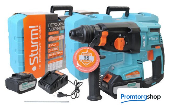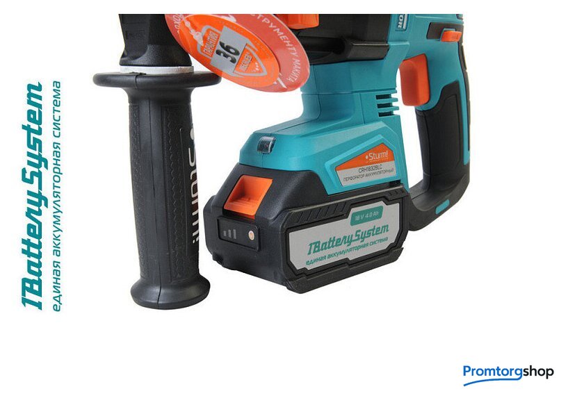 Комплект поставки | - Перфоратор аккумуляторный (1 шт)- Боковая рукоятка (1 шт)- Ограничитель глубины сверления (1 шт)- Аккумуляторная батарея 4.0 Ач (1 шт)- Зарядное устройство (1 шт)- Пластиковый кейс (1 шт) |