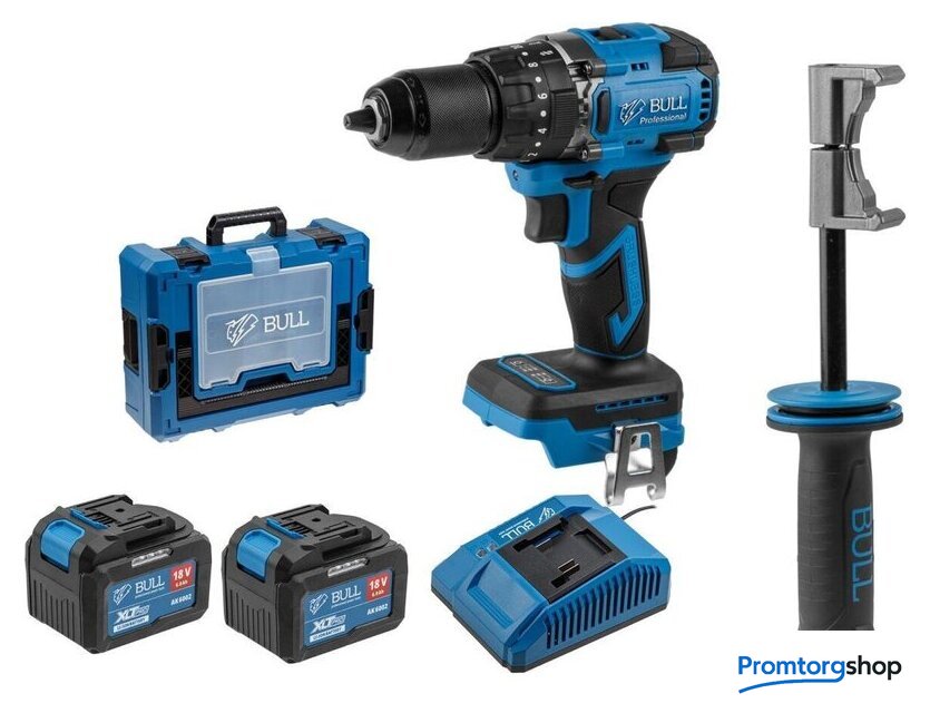 | Комплектация | - Шуруповерт аккумуляторный - 1 шт., - Аккумулятор BULL AK 6002 - 2 шт., - Зарядное устройство BULL LD 5002 - 1 шт., - Скоба для крепления на поясе, 1 шт., - Инструкция по эксплуатации - 1 шт., - Ящик BULL Xcase X002 M - 1 шт. |