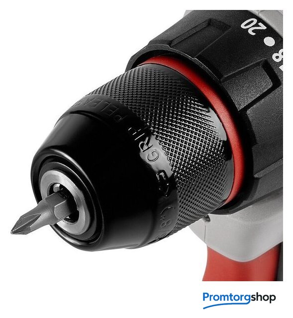 | Комплектация | • дрель−шуруповерт• аккумулятор (2 шт)• зарядное устройство• бита двухсторонняя• кейс• руководство по эксплуатации• гарантийный талон |
