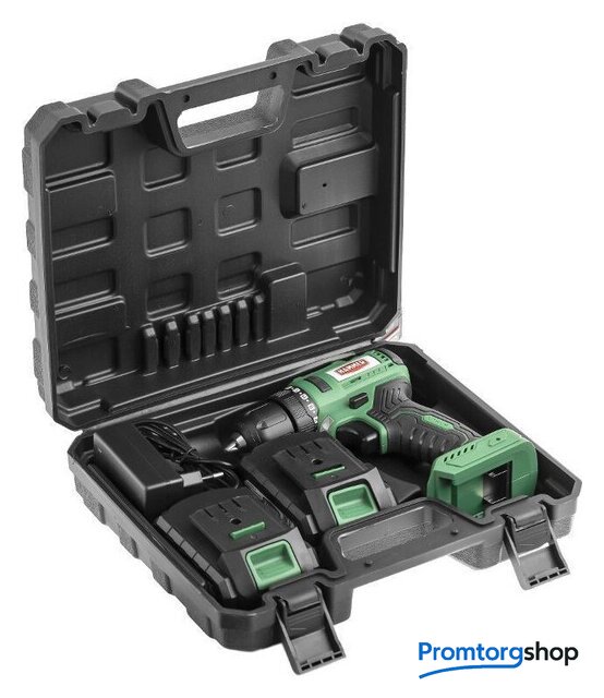 | Комплектация | Дрель-шуруповерт - 1 шт.Зарядное устройство - 1 шт.Аккумулятор 2,0 Ач - 2 шт.Кейс |
