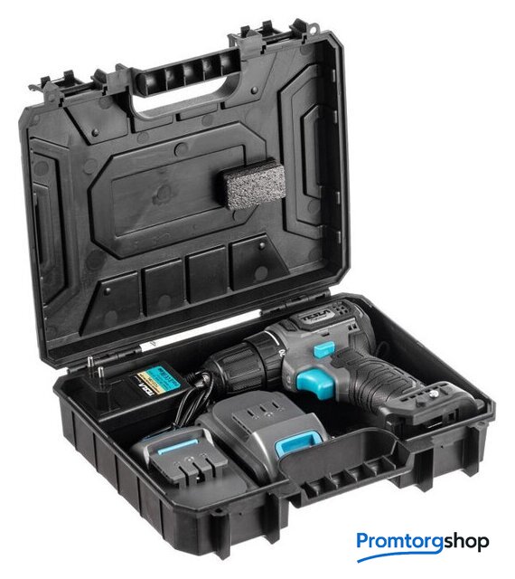 | Комплектация | Дрель-шуруповерт - 1 шт.Зарядное устройство - 1 шт.Аккумулятор 2,0 Ач - 2 шт.Кейс |