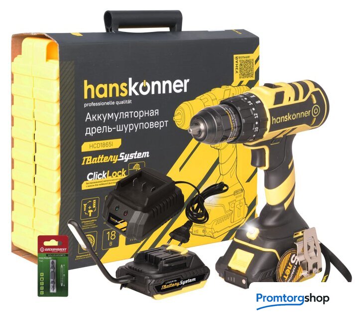 Комплектация | Дрель-шуруповерт аккумуляторная, аккумуляторная батарея (2 шт, одна подсоединена к шуруповерту), зарядное устройство, двусторонняя бита, USB LED-фонарик, инструкция по эксплуатации, инструкция по безопасности, пластиковый кейс |