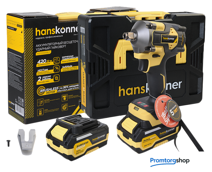 Комплектация | - Аккумуляторный ударный гайковерт (1 шт)- Аккумуляторная батарея (1 шт)- Зарядное устройство (1 шт)- Скоба (1 шт)- Фиксирующий винт (1 шт)- USB LED-фонарик (1 шт)- Кейс |